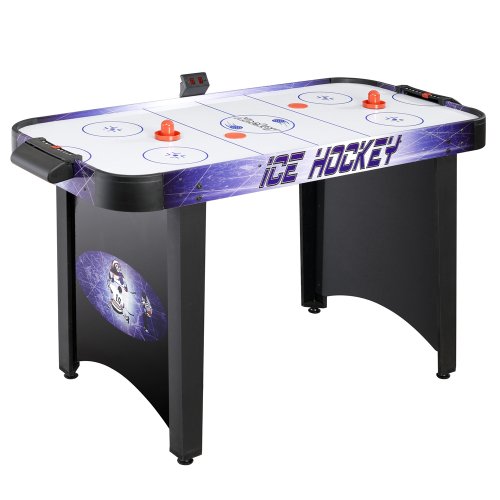 Big table features along with quality construction makes the Hathaway Hat Trick table a great starter air hockey choice. The table's high output 110V UL Approved electric blower, heavily weighted strikers and pucks, and sturdy L – shaped legs with independent stabilizing leg levelers, mean many hours of fast paced action. The playing surface is fully poly sealed to allow max airflow and great puck action. Hathaways 48 in. table is made with strong CARB Certified MDF material that is far superior to flimsy particle board and plastic. The table has built-in goal boxes and a manual slide scoring system to keep track of all the action. with all the quality features, you can't go wrong at this great price. Comes with two 3 in. strikers and two 2.5 in. pucks. UL Approved. 90-day Limited Warranty.