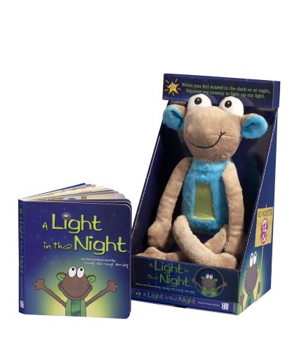 No more monsters! The perfect exclamation for A Light In the Night. Created by a mother to comfort her oldest son when he moved to his "big boy bed," the gift set includes an adorable light-up creature and beautifully illustrated board book. Just one soft press of the tummy emits a bright glow which proves once and for all there is nothing going bump in the night.