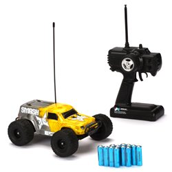Whether you're ripping through the dirt, roasting the pavement or destroying your living room, the 1/18-scale Smash monster truck delivers. It can take a beating without breaking a sweat. Thanks to powerful Dynamite electronics, this truck will blast through the neighborhood with intense speed and quick acceleration. The Smash was built from the ground up and comes with everything you need to get started right in the box, from the transmitter to the AAs. The 1/18-scale Smash Monster Truck is the perfect monster truck for RC enthusiasts looking for a lot of fun in a small package.