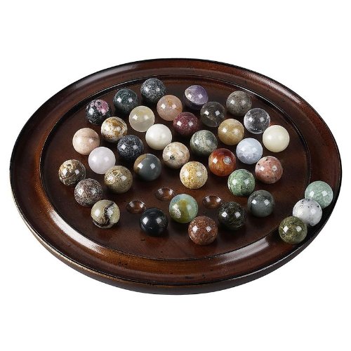 The Authentic Models Solitaire Di Venezia 20mm marbles set includes hand-cut and polished semi-precious marbles, selected for color and variety. Game board made of non-endangered hardwood. This fabulous game board is highly decorative with its brilliant colors contrasted beautifully against the mahogany base. All the marbles are mined, hand-cut, ground and polished by hand in Madagascar. Madagascar is known for its unique variety of minerals You can use this item as home decor or it is fully functional as a game.